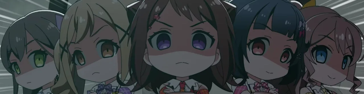 スマートフォン向けゲーム『バンドリ! ガールズバンドパーティ!』を原作とするショートアニメシリーズ。作中に登場するガールズバンドのメンバーたちが、デフォルメされた可愛らしい姿で描かれる。Poppin'Party、Afterglow、Pastel*Palettes、Roselia、ハロー、ハッピーワールド!といった人気バンドのメンバーたちが、普段の音楽活動とは異なる、コミカルで賑やかな日常を繰り広げる。小さく可愛らしい姿に変身した彼女たちが、時にドタバタと騒がしく、時に心温まるような様々な出来事を巻き起こす様子を描き、ファンに新たな魅力を届ける作品である。