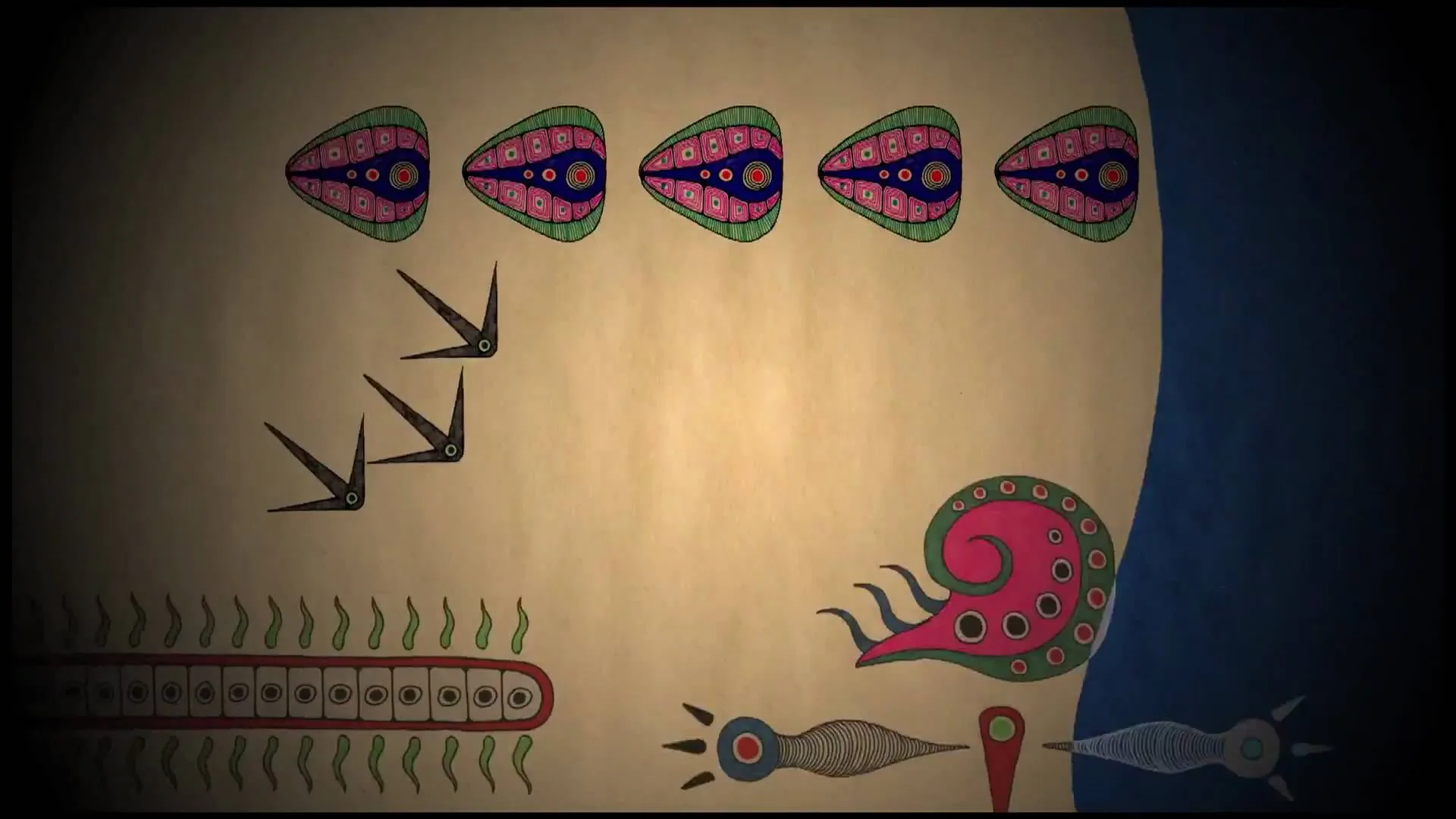 『AND AND』は、音楽家・松本徹の楽曲に合わせて制作されたミュージックビデオである。アニメーションは水江未来が担当し、彼独特の抽象的かつリズミカルなスタイルが特徴だ。映像は音楽のリズムやメロディと密接に連動し、幾何学的なパターンや有機的な動きが絶えず変化しながら視覚的なハーモニーを奏でる。水江未来の作品群に共通する、形と色が織りなす視覚的な詩情が、視聴者を音と動きが一体となった独特の世界へと誘う。